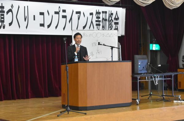 講師には、昨年に引き続き上前拓也氏をお招きし、「働きがいのある職場環境づくり」をテーマに、職員同士でグループワークを行いながら上司と部下の円滑なコミュニケーションの取り方やストレス源に応じたストレスの発散方法、コンプライアンスの重要性などについて理解を深めることができました。